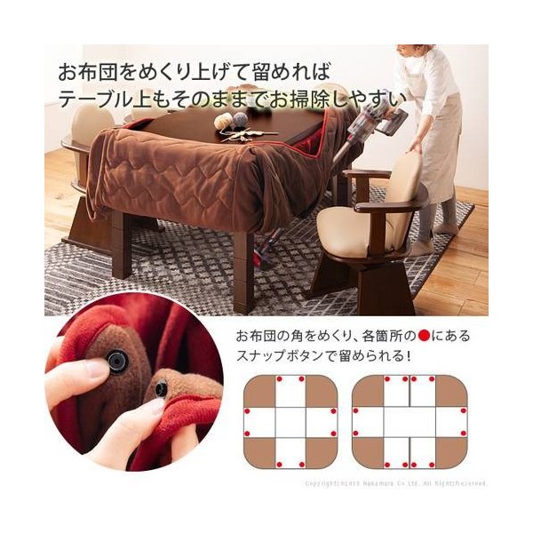 kag-36089 こたつ + 掛布団 セット ダイニングテーブル 椅子用 ローテーブル こたつ布団 正方形 高さ調節 昇降 ロータイプ 継ぎ足 80×80 コンパクト ミニ 一人暮らし