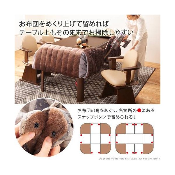 kag-36093 こたつ + 掛布団 セット ダイニングテーブル 椅子用 ローテーブル こたつ布団 正方形 高さ調節 昇降 ロータイプ 継ぎ足 60×90 コンパクト ミニ 一人暮らし