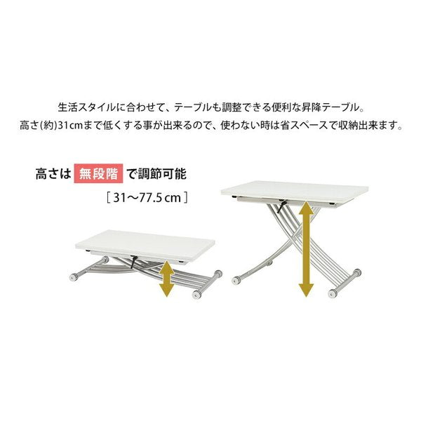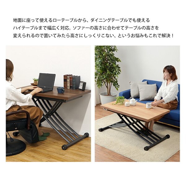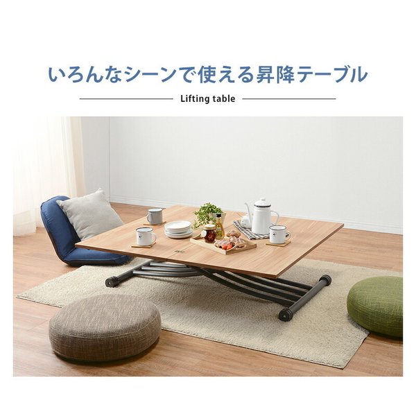 天板が2倍に拡張。座卓からダイニングまで高さが無段階に調節できる昇降テーブル。