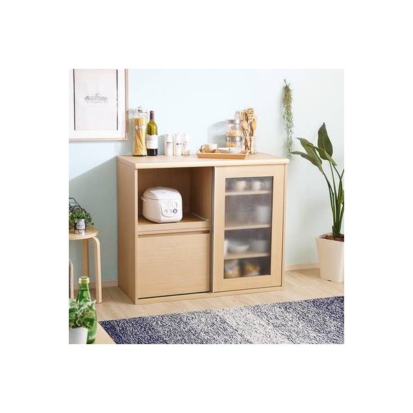 kag-27066 食器棚 キッチン 食器収納 キッチンラック レンジ台 レンジ棚 ミニ食器棚 幅105 奥行45 引き戸 スライド 炊飯器 コンセント
