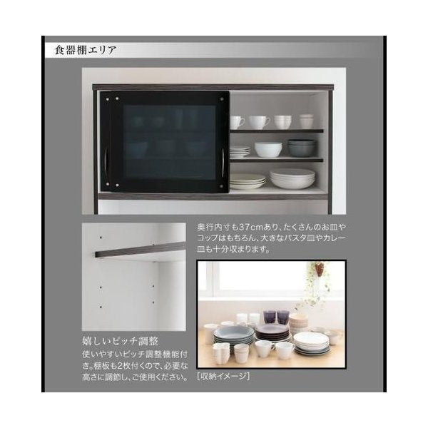 kag-35033 食器棚 キッチン 収納 棚 ラック 大容量 ( 約 幅105 奥行45 高さ190 ) ハイタイプ 日本製 完成品 蒸気 引き戸 ガラス 引出 コンセント 炊飯器 スライド モダン