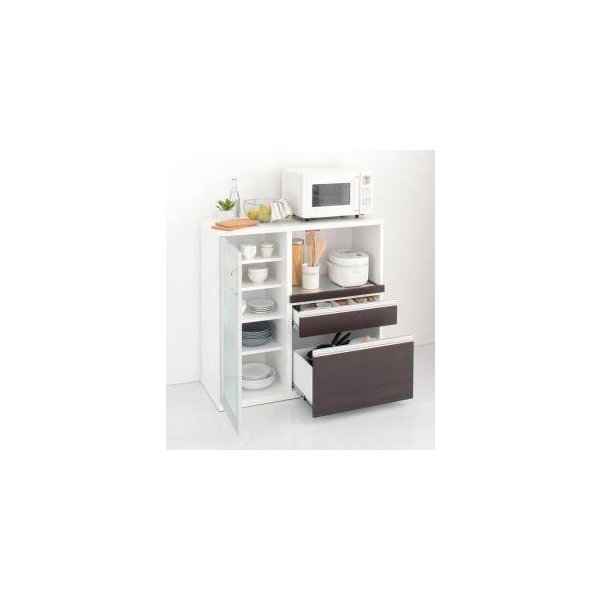 kag-35044 レンジ台 食器棚 キッチン 収納 ラック ロータイプ コンパクト 炊飯器台 ( カウンター 組立有 約 幅100 奥行40 ) 薄型 作業台 ガラス 引出 コンセント スライド
