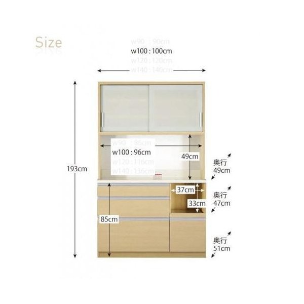 kag-35113 食器棚 キッチン 収納 棚 ラック 大容量 ( 組立有 約 幅100 奥行50 高さ195 ) ハイタイプ 大型レンジ 引き戸 ガラス 引出 コンセント 炊飯器 スライド モダン