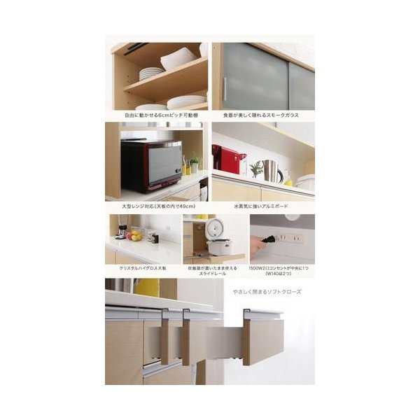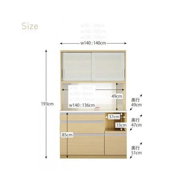 kag-35117 食器棚 キッチン 収納 棚 ラック 大容量 ( 組立有 約 幅140 奥行50 高さ195 ) ハイタイプ ワイド 大型レンジ 引き戸 ガラス 引出 コンセント 炊飯器 スライド