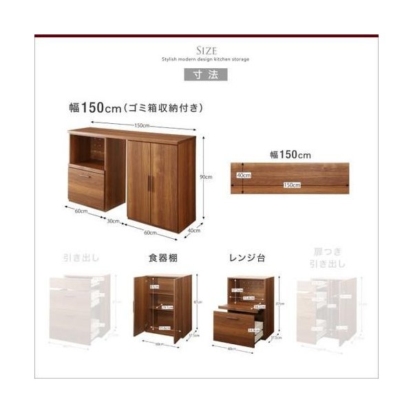 当商品はレンジ台+食器棚150-