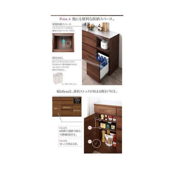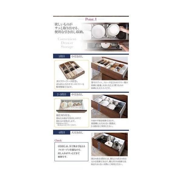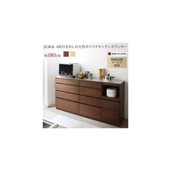 開梱設置付き 4段引き出しの天然木ワイドキッチンカウンター