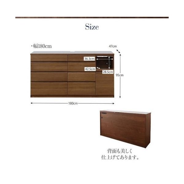 kag-35424 食器棚 キッチン 収納 ラック 大容量 ( 組立有 カウンター 約 幅180 奥行47 高さ95 ) ロータイプ ワイド 作業台 引出 コンセント 炊飯器 スライド ヴィンテージ