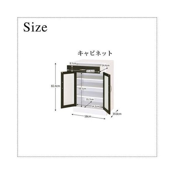 kag-35442 食器棚 キッチン 収納 棚 ラック ( キャビネット 約 幅60 奥行40 高さ82 ) ロータイプ 低い 薄型 スリム ミニ コンパクト 一人暮らし ガラス 引出 モダン 高級