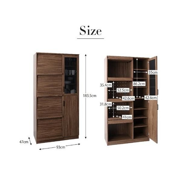 食器棚内寸(上下共通):(約)幅35 奥行42.6 高さ86.2cm