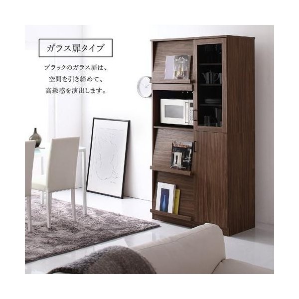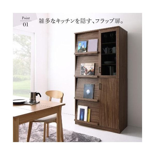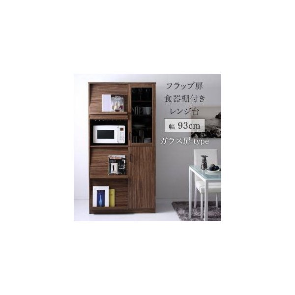kag-35445 食器棚 おしゃれ キッチン 収納 棚 ラック ハイタイプ 大容量 ( レンジ台 ガラス 約 幅95 奥行50 高さ185 ) フラップ扉 ヴィンテージ 男前 ブルックリン レトロ