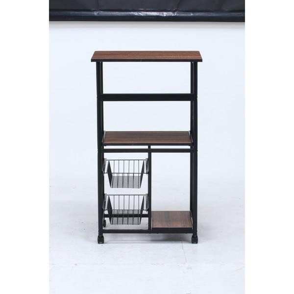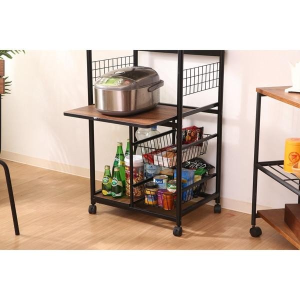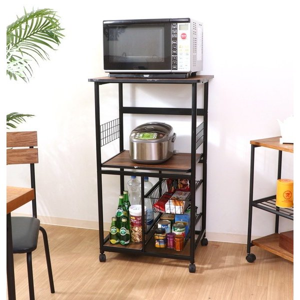 kag-37040 レンジ台 レンジラック おしゃれ 北欧 安い キッチン 収納 棚 ラック ロー スライド 炊飯器 大容量 スリム キャスター ワゴン 黒×ブラウン 幅60 奥行46 高さ104