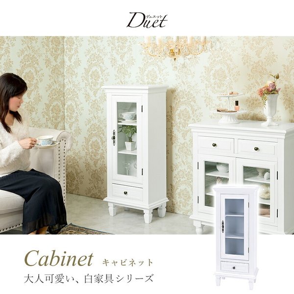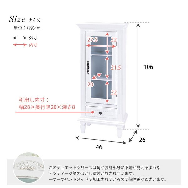 ところどころに剥がし塗装を施したシャビーテイストな小ぶりで可愛らしいキャビネット
