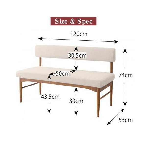 【サイズ】幅120 奥行53 高さ74(座面高43.5cm)