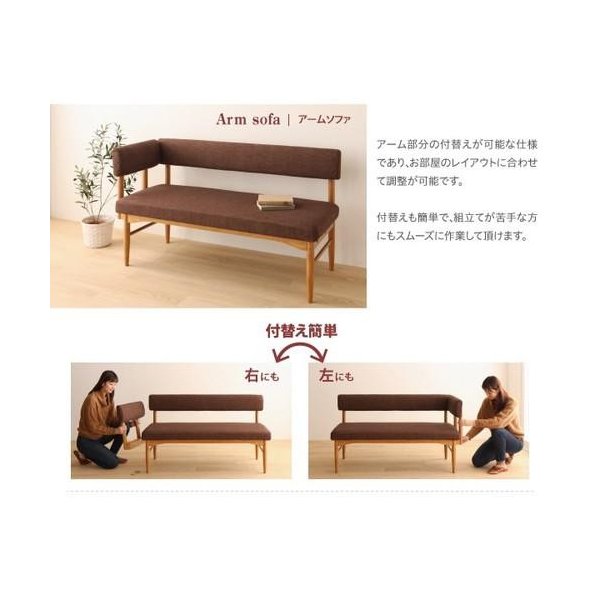 セット内容:ダイニングテーブル、アームソファ、バックレストソファ、ベンチ