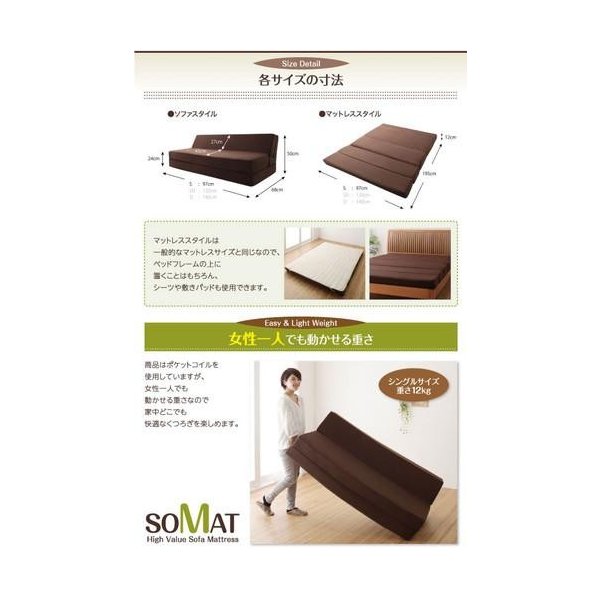 セミダブル:幅120 長さ195 高さ12cm、15kg