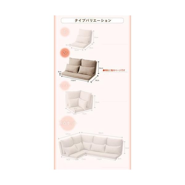 ・2P:(約)幅110 奥行74~109 (座面奥行60)