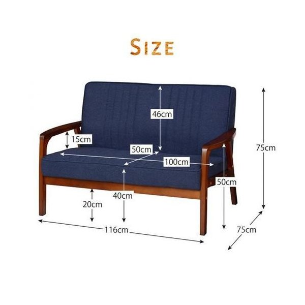 kag-34912 ソファー おしゃれ 安い 2人掛け 2人用 115cm 無垢 脚 ルンバ 木製フレーム 木枠 布張り 西海岸 ヴィンテージ レトロ ミッドセンチュリー ブルックリン サーフ系