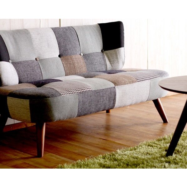 kag-36761 ソファー 2人掛け 2人用 ダイニングベンチ チェア 椅子 おしゃれ 北欧 安い 木製 二人用 一人暮らし パッチワーク 幅123 奥行66 高さ67 座面高36