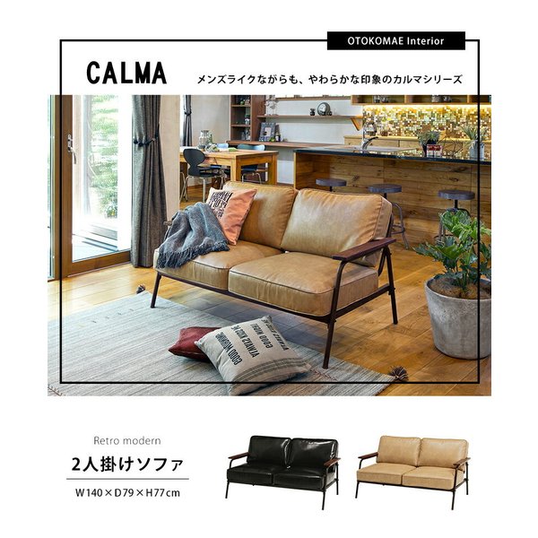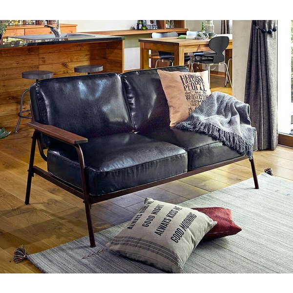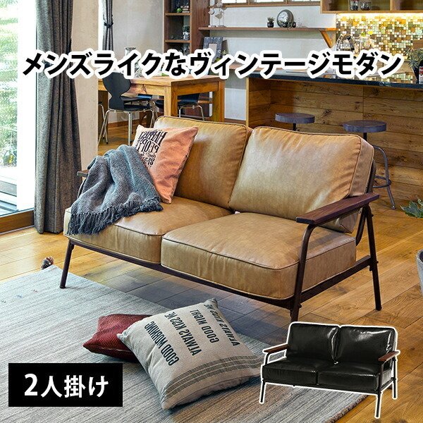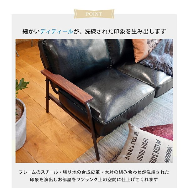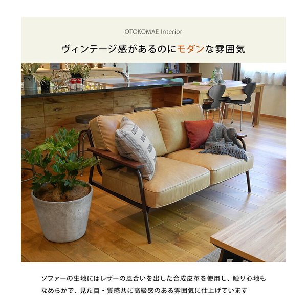 kag-37368 ソファー 2人掛け レザー 合皮 pu 脚 ルンバ 肘掛け ベンチ ダイニング 食事 アジアン 西海岸 ヴィンテージ レトロ ミッドセンチュリー ブルックリン サーフ系