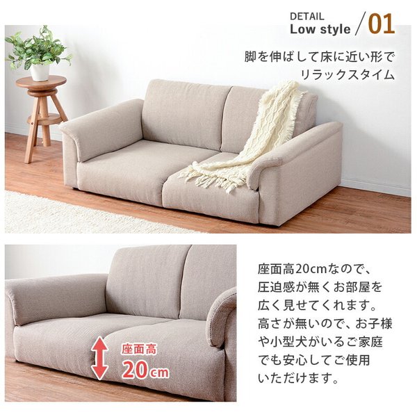 kag-37371 ソファー 2人掛け ローソファー 地べた 直置き 肘掛け ごろ寝 北欧 モダン デザイナーズ 高級 ミッドセンチュリー 約 幅130 座面高20