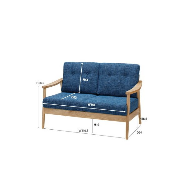 kag-56515 ソファー ソファ 2人掛け 長椅子 テレワーク 在宅 チェア 一人暮らし ブルー 青 約 幅127 奥行71 高さ85 座面高41