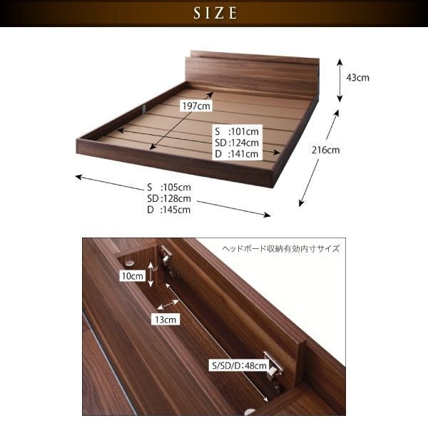 kag-10141 ベッド ダブル ローベッド 低い 宮 棚 スマホ リモコン ラック ライト 収納 フレーム 北欧 おしゃれ ヴィンテージ コンセント 充電 照明 SボンネルCマットレス付