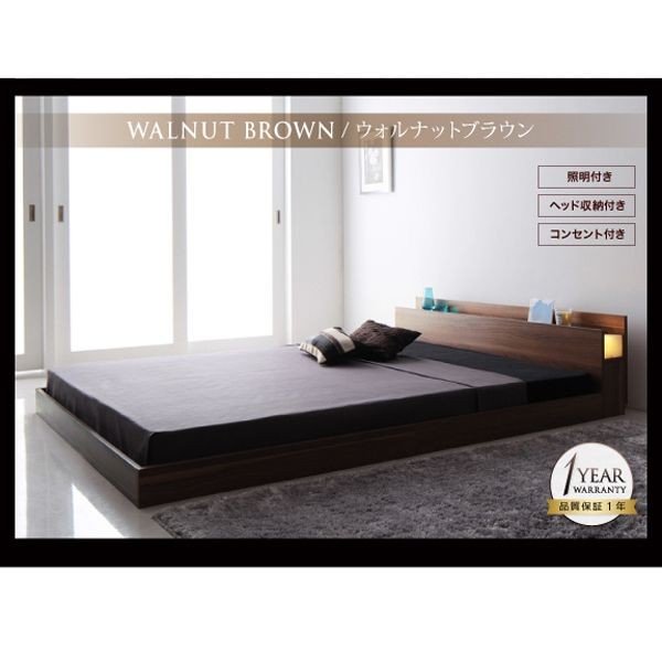 kag-10166 ベッド ダブル ローベッド 低い 宮 棚 スマホ リモコン ラック ライト 収納 フレーム 北欧 おしゃれ ヴィンテージ コンセント 充電 照明 PポケットCマットレス付