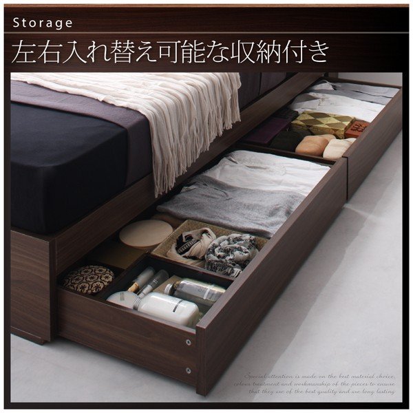 kag-10365 ダブル ベッド チェスト 下収納 引き出し 大容量 棚 宮 スマホ リモコン コンセント 充電 収納 フレーム 北欧 おしゃれ ヴィンテージ SポケットCマットレス付