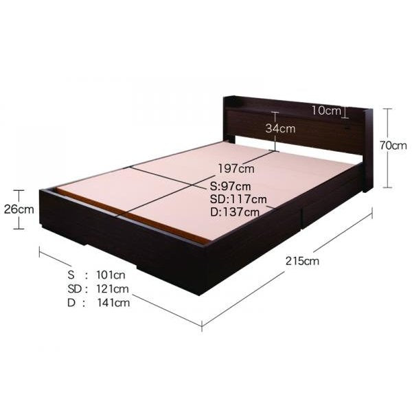 kag-10977 ダブル ベッド チェスト 下収納 引き出し 大容量 宮 棚 スマホ メガネ リモコン ラック コンセント 充電 収納 フレーム 北欧 おしゃれ モダン ヴィンテージ