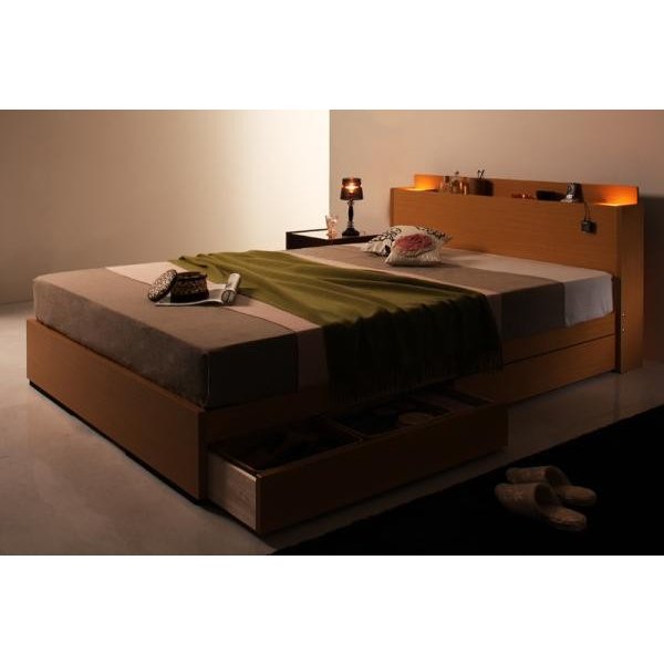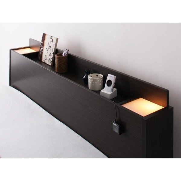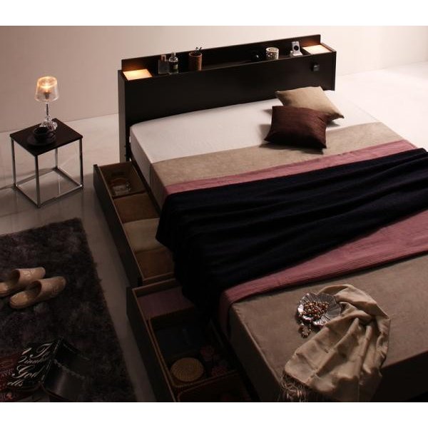 kag-10994 ダブル ベッド チェスト 下収納 引き出し 大容量 宮 棚 携帯 スマホ メガネ リモコン ラック ライト 読書 コンセント 充電 収納 フレーム おしゃれ モダン 照明