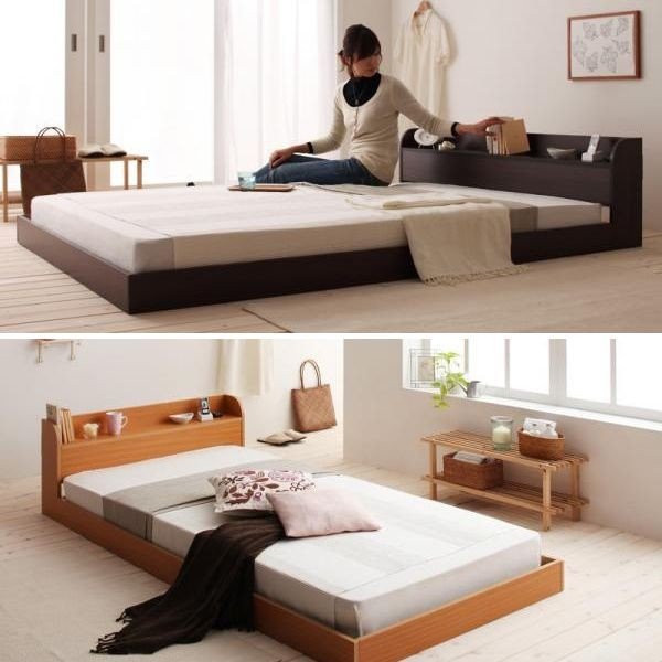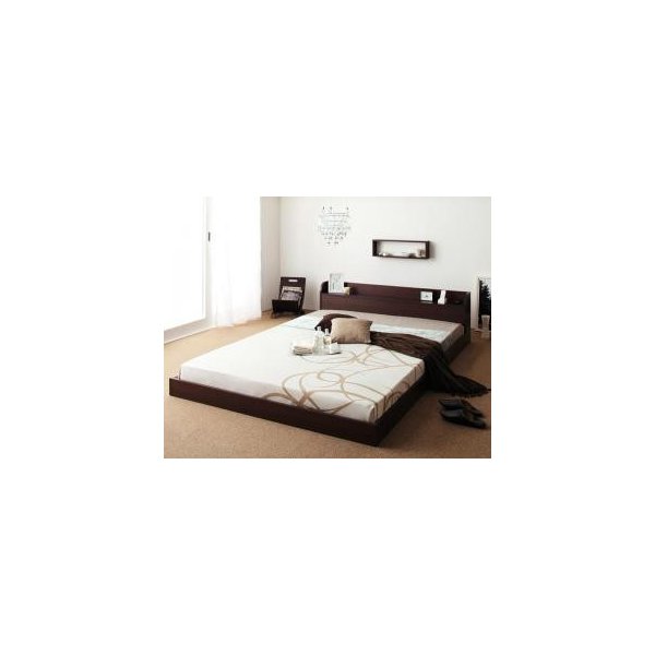 kag-11063 ベッド ダブル ローベッド 低い 棚 ラック 宮付き 携帯 スマホ メガネ リモコン コンセント 充電 北欧 おしゃれ モダン ヴィンテージ PボンネルCマットレス付き