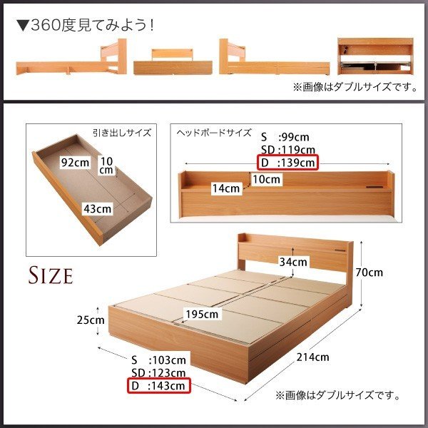 kag-11242 ダブル ベッド チェスト 下収納 引き出し 大容量 宮 棚 スマホ リモコン ラック コンセント 充電 収納 北欧 おしゃれ ヴィンテージ マルチラスSSマットレス付