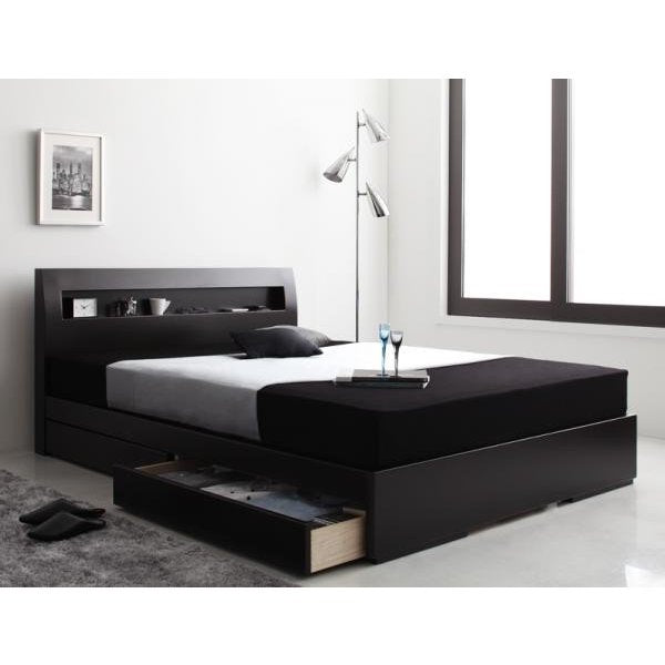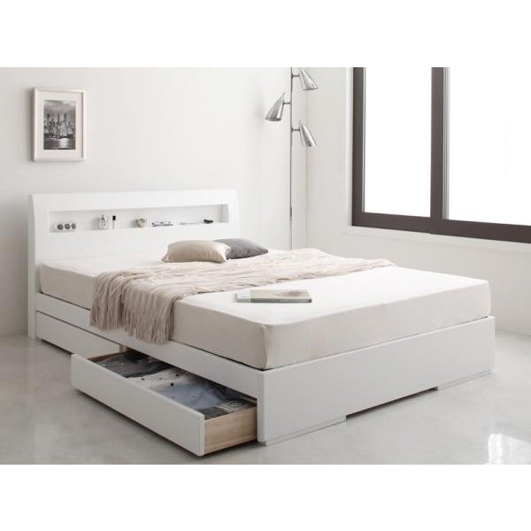 kag-4172 ダブル ベッド チェスト 下収納 引き出し 大容量 棚 宮付き スマホ メガネ リモコン コンセント 充電 収納 フレーム おしゃれ (マルチラスSSマットレス付)
