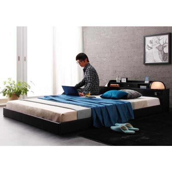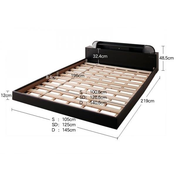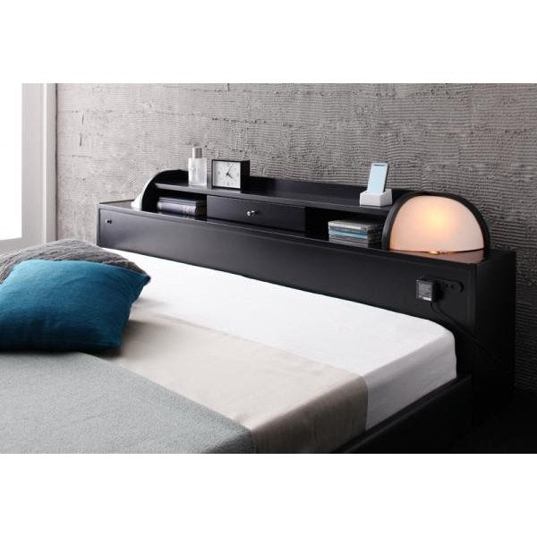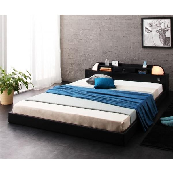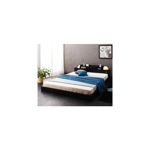 kag-4754 ベッド ダブル ローベッド 低い 宮付き 棚 携帯 スマホ メガネ リモコン ラック ライト 読書 コンセント 充電 おしゃれ モダン 照明 SボンネルCマットレス付き