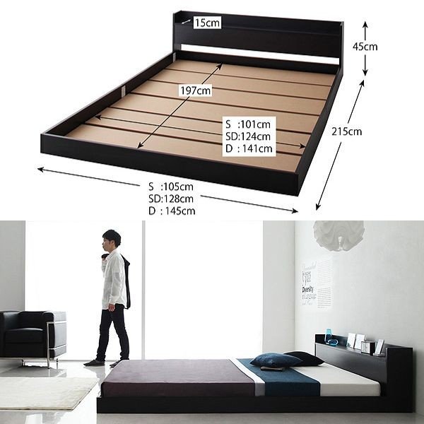 kag-9891 ベッド ダブル ローベッド ロータイプ 低い フロアベッド 棚 ラック 宮付き 枕元 携帯 スマホ メガネ リモコン コンセント 充電 フレーム おしゃれ モダン